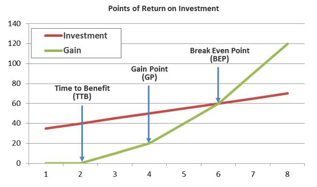 ROI’yi bir süreç içerisinde ele almak gerekir. Yani yatırımdan sağlanacak gelir artışının veya tasarrufun, yatırımı karşılayacağı noktaya (Başabaş Noktası – Break Even Point) ulaşılması ne kadar sürecek buna bakmak gerekir.